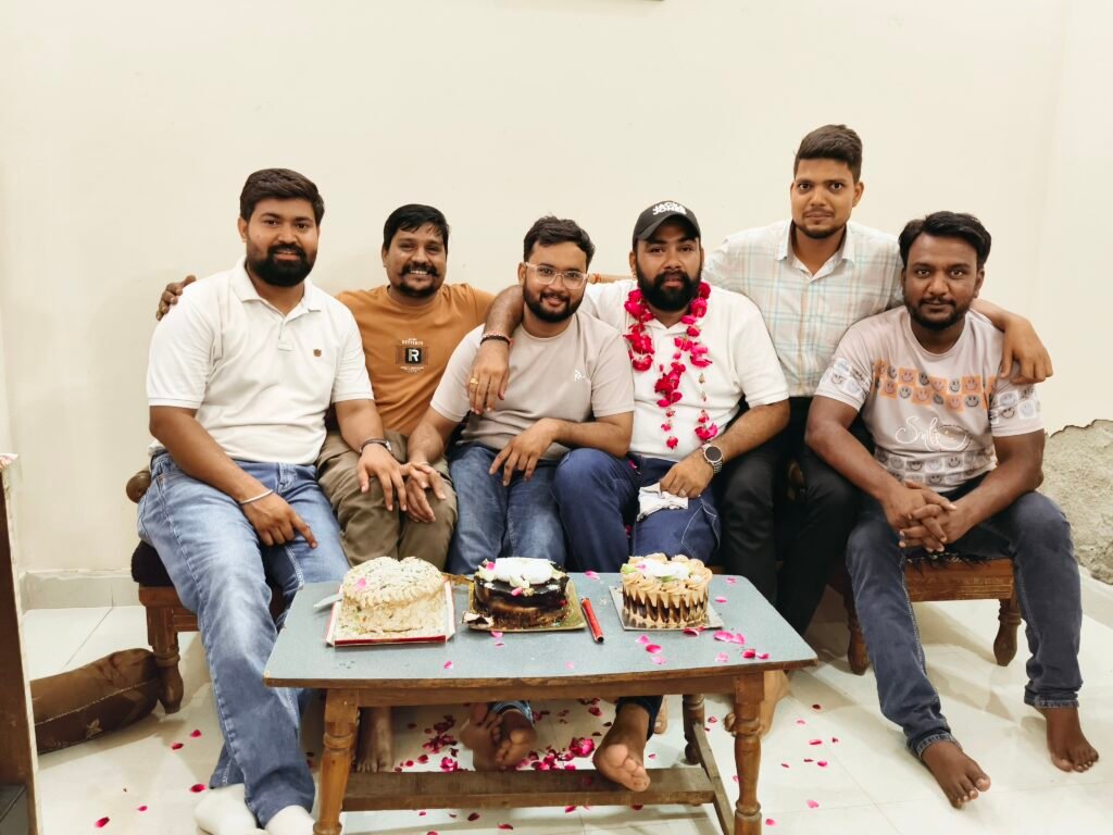 नमन के करीबी दोस्तों — अमन मोदी, दीपक जैन, रूपम जैन, पीयूष जैन, अमन जिंदल, अविनाश जांगिड़ और विशाल राठौड़ ने एक खूबसूरत मावा, चॉकलेट ट्रफल केक के साथ सरप्राइज़ एंट्री ली। तालियों और ‘Happy Birthday’ की गूंज के बीच नमन ने केक काटा और सभी ने मिलकर जश्न मनाया।